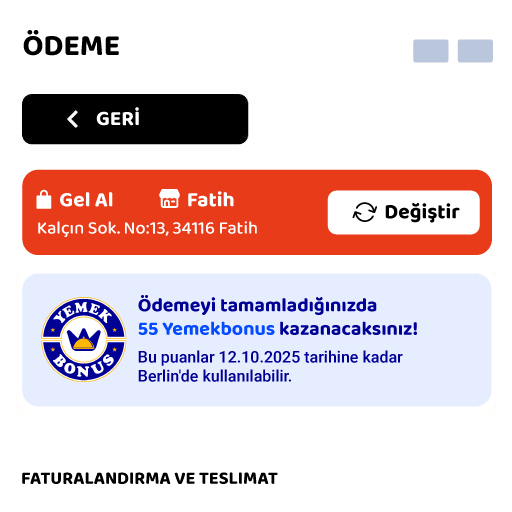 Ödeme sayfasında, her siparişte ne kadar Yemekbonus kazanacağını görebilirsin.